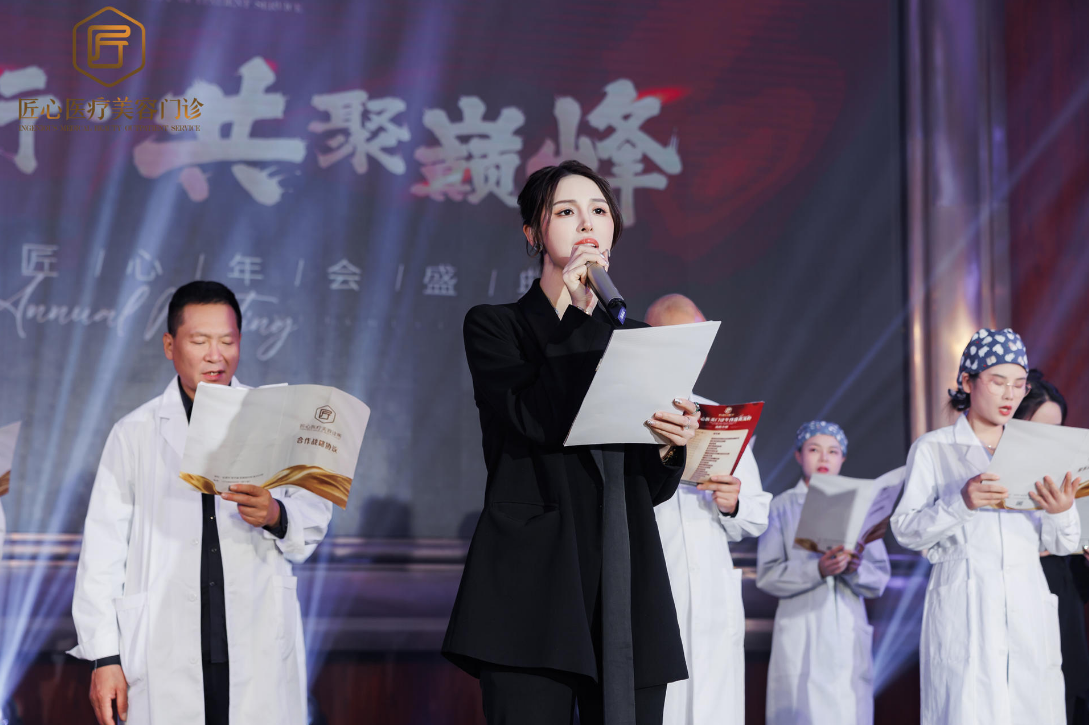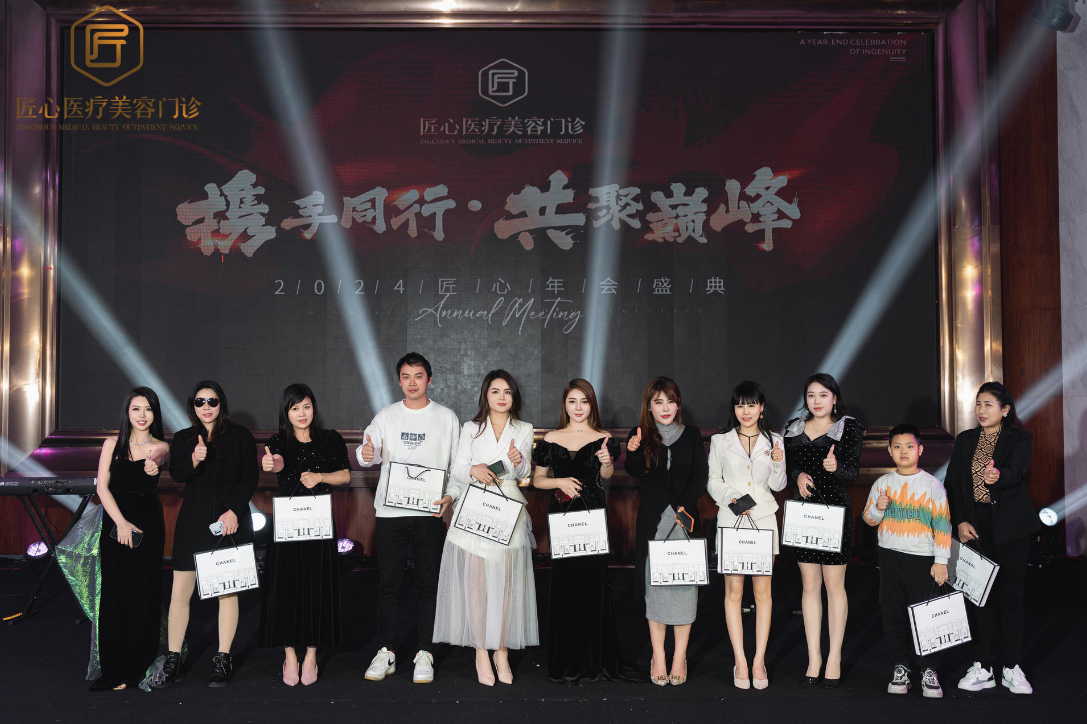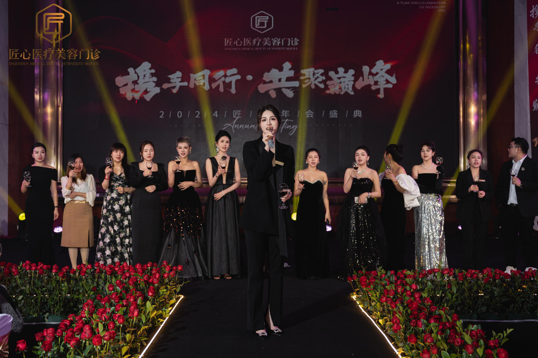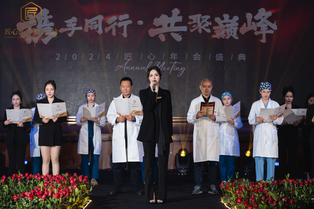 匠心医美,一个以“顾客的身心美丽”为己任,致力于推动医美行业发展的品牌。它汇聚了专业医生、技术人员和管理精英,共同打造了一个高品质、高标准的医美服务平台。在这里,每一位顾客都能感受到匠心独运的细致关怀和精湛技艺。 携手同行·共聚巅峰 匠心医美年会盛典揭幕2024年1月5日,星光璀璨,华灯初上。匠心医美迎来了一年一度的年会盛典——“携手同行·共聚巅峰2024匠心年会”。此次盛典汇聚了业界精英、合作伙伴和广大顾客,共同见证了匠心医美一年来的辉煌成就。