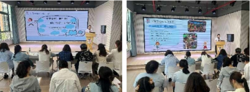 《拼摆创意区的二三事——巧用自然物 助幼儿生命成长》 分享者:翟兆玲 不起眼的自然材料是孩子们爱不释手的游戏材料,孩子们能用它玩出各种“可能性”。翟老师的案例聚焦孩子们在游戏中对自然物的使用情况,通过观察识别、等待解读、支持反思来持续关注和推进孩子们的游戏,在边思考边支持的过程中,实现师幼的共同成长。