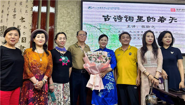 诗情画意的春天刚刚逝去,但我们仍感意犹未尽,还沉浸在对春的无限回忆和未来的美好憧憬里。为弘扬优秀传统文化,品读国学经典,5月18日,九江市图书馆寻庐讲坛特邀寻庐讲坛学术委员会副主任张龄之老师为听众们带来了一场主题为《古诗词里的“春天”》的公益讲座。 讲座的开场,张龄之老师说道,春天不仅仅是指一种季节,有的时候也指一种状态。青年时期是青春年华;志得意满是春风得意;国家繁荣是春意盎然等。那古诗词中的作者们是否也会迎来人生春天一般的状态呢? 接着,张龄之老师从古诗词里爱情的“春天”、家国的“春天”、事业的“春天”三个方面,用深入浅出的讲述、凄婉动人的传说、清新脱俗的语言,向听众展现了古代作者们人生中的所见所闻、所思所想、所作所为,探究了古人丰富的精神世界和深厚的文化脉络。