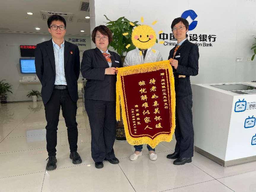 近日,建行秦淮五龙桥支行收到了瑞金路社区送来的一面锦旗。 “待老如亲关怀暖,排忧解难似家人”道出了秦淮五龙桥支行上门服务,传递服务“温度”的暖心故事。