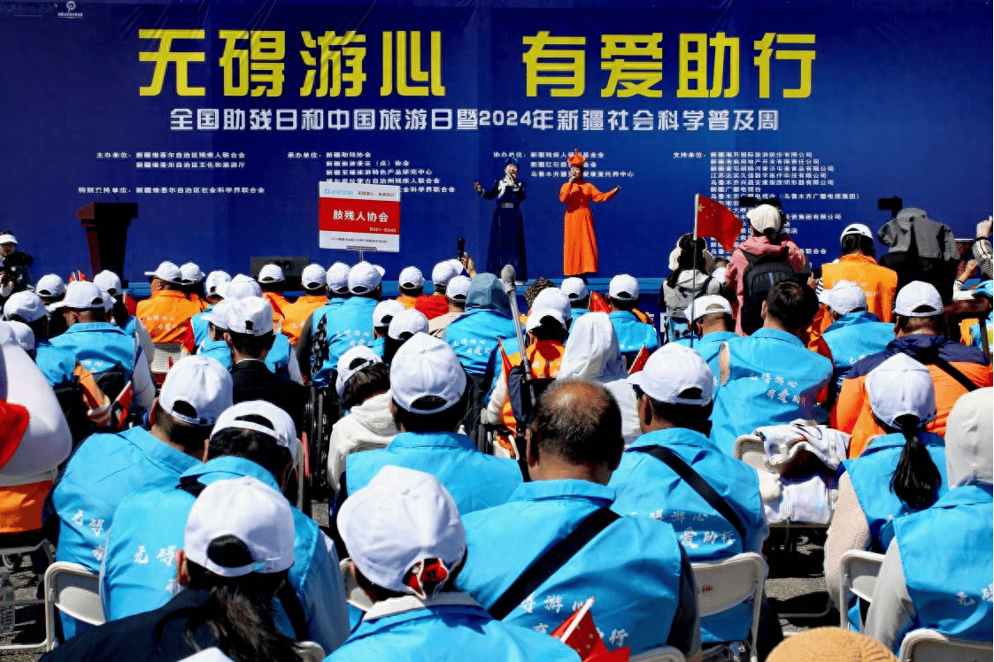 ——5.19全国助残日和中国旅游日暨 2024 年新疆社会科学普及周活动 2024 年 5 月 17-19 日,由自治区助残协会、新疆旅游景区(点)协会、新疆至臻特色旅游产品中心、赛里木湖风景名胜区管理委员会联合社会各界在赛里木湖景区共同举办“无碍游心,有爱助行 ”为主题的 5.19 全国助残日、中国旅游日暨2024 年新疆社会科学普及周活动。