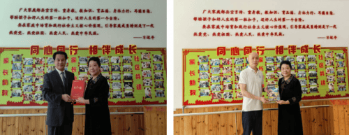 爱国工程研究院刘仲军院长、中国关心下一代工作委员会教育中心郭鹏副主任向青岛雅荷幼儿园捐阅《爱国主义教育法》、《我爱你中国》、《玩转科学哈画报》等爱国主义教育系列读本及绘本,马瑞平园长代表幼儿园接受赠书。