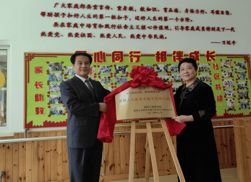 2024年5月18日,爱国工程研究院刘仲军院长、中国关心下一代工作委员会教育中心副主任、北京成长教育发展基金会副理事长郭鹏等一行,赴青岛雅荷幼儿园实地考察调研,共建双方现场召开了“共建爱国主义教育示范幼儿园座谈会”。刘仲军院长代表院爱国主义教育基地工作领导小组办公室,向马瑞平园长捐赠了《爱国主义教育法》及爱国主义教育读本《我爱你中国》系列读本;并现场举行了“爱国主义教育共建示范幼儿园揭牌仪式”。