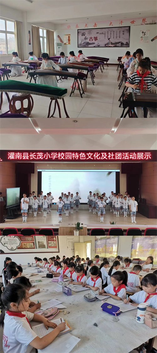 灌南县长茂小学-------一颗闪耀在苏北黄浦江畔的明珠,一所经过现代化创建洗礼的“涅槃重生”的学校。学校在“和谐与卓越”校训的引领下,努力培养具有乡土情结、民族灵魂、多元发展的现代学生。社团活动蓬勃发展,学校成立二胡、琵琶、古筝、剪纸、书法、太极、跳绳、奥数、象棋、篮球等17个校级社团,每个班级还有班级社团。社团活动的开展拓展了学生的兴趣爱好,展示了学生的智慧才华,丰富了校园文化生活。
