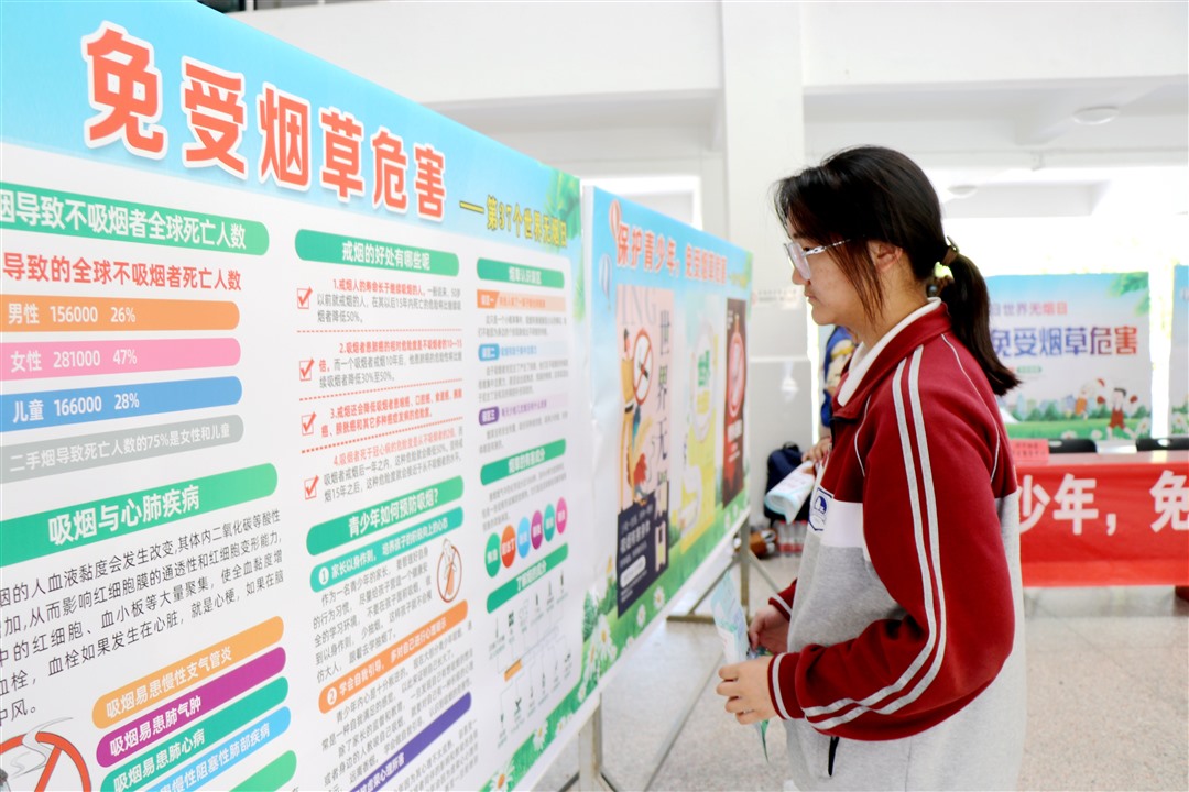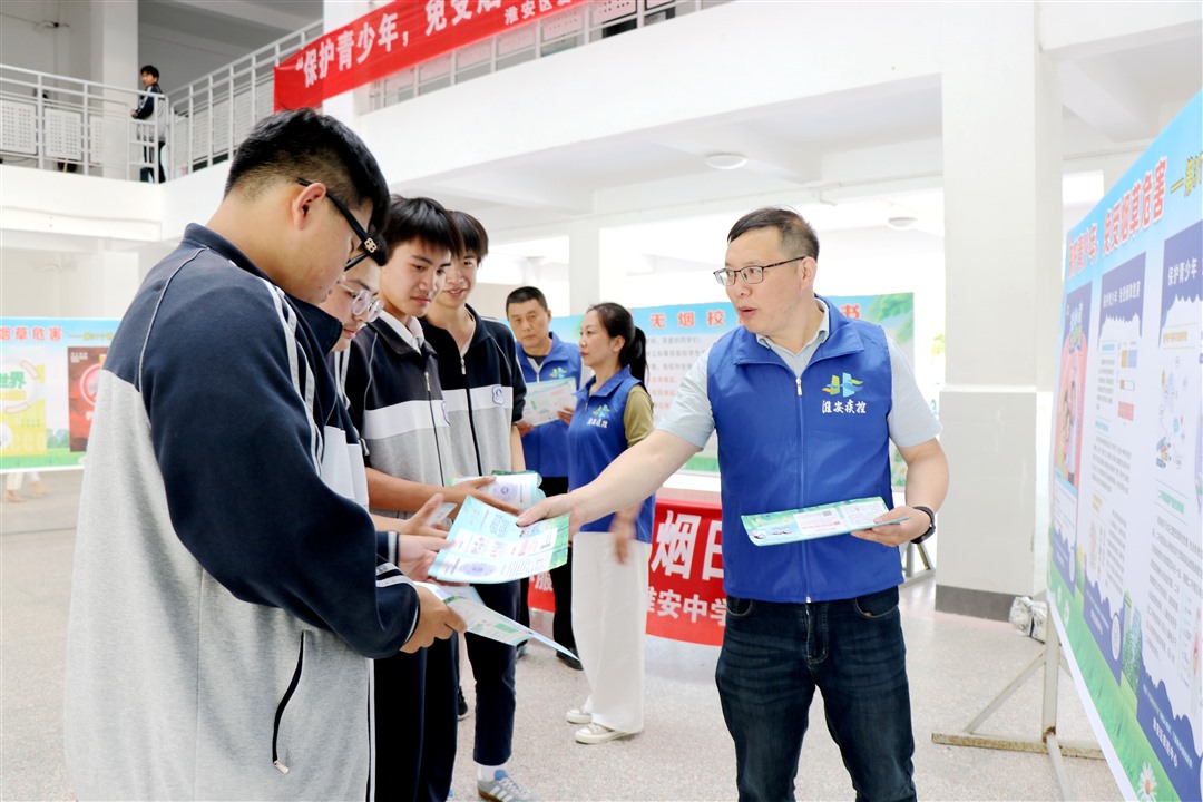 今年5月31日是第37个世界无烟日。今年的世界无烟日主题是“保护青少年,免受烟草危害”。为进一步提高学生对烟草危害的认知,引导学生远离烟草制品、拒绝吸烟,给学生营造一个无烟、健康的成长环境,5月28日下午,淮安区疾病预防控制中心来淮安中学开展第37个世界无烟日主题宣传活动,高一年级部分学生参加活动。淮安区疾控中心副书记张国英,淮安中学副校长葛金雷等领导出席活动。活动由淮安中学学生工作处主任徐怀亮主持。 ![]() 活动在淮安中学翔宇楼一楼中庭举行,现场关于第37个世界无烟日的宣传展板依次排开,横幅高悬,营造了浓厚的宣传氛围。 活动开始后,淮安中学副校长葛金雷作了讲话。他说,烟?的危害已成为当今世界最严重的问题之一,每年吸烟致死的人不计其数。其中,青少年也占了不小的比例。对于青少年来说,吸烟比想象中的危害更大,它不仅会导致很多疾病,还会影响骨骼的生长发育,损害大脑,使思维迟钝,记忆力减退,影响正常的学习。即使我们不吸烟,但是被动的吸二手烟的危害,对我们的危害也很大。他希望同学们自觉远离香烟,并能够提醒劝诫身边吸烟的人,尽快戒烟。 ![]() 高一Ⅰ部1班学生蒋子琳向同学们发出“保护青少年,免受烟草危害”的倡议。她说:“我们要从自身做起,自觉远离烟?,养成良好生活习惯;从校园做起,提醒劝诫他人,创建无烟校园环境;从身边做起,参与控烟宣传,支持无烟环境建设。” 淮安区疾控中心副书记张国英作了讲话。她希望同学们学习健康知识,知道吸烟的危害,自觉做到不吸烟,还要成为控烟的宣传员,告诉同学、家长以及周围的人不吸烟,做健康知识的传播者。 ![]() 淮安区疾控中心工作人员引导同学们参观了第37个世界无烟日的宣传展板,发放了健康知识材料,向同学们介绍了我国学生吸烟现状以及学生吸烟的危害,倡导同学们养成文明健康的生活方式,远离烟草,拒绝吸烟。 同学们纷纷表示:要从自身做起,养成文明健康的生活习惯,带动身边人,一起营造文明、健康的校园环境和社会环境。 本次活动,提高了学生对吸烟危害的认识,增强了学生自觉抵制吸烟与被动吸烟的意识,同时为营造无烟校园环境,保护学生健康打下良好的基础。淮安中学会继续加强对学生的健康教育,与家长一起,关注学生的健康,助力学生快乐成长。(通讯员:房春东) |