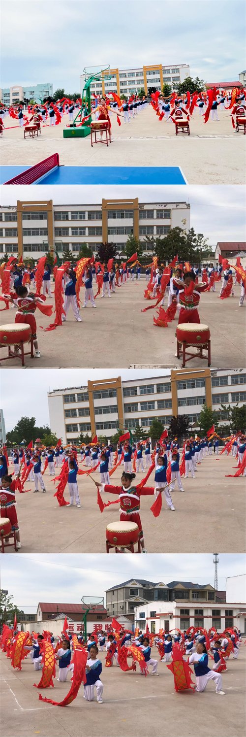 随着展示活动“开始”的一声号令,16面红旗代表三口小学近700名少先队员,伴着《中国龙》的乐曲,鱼贯式进入特色展示活动场地,灵动飘扬的红旗体现了少先队员的勃勃生机,两条金黄色的巨龙腾空而来,特色活动“龙腾鼓乐(yue)”拉开序幕。