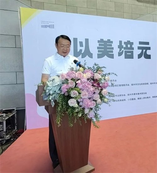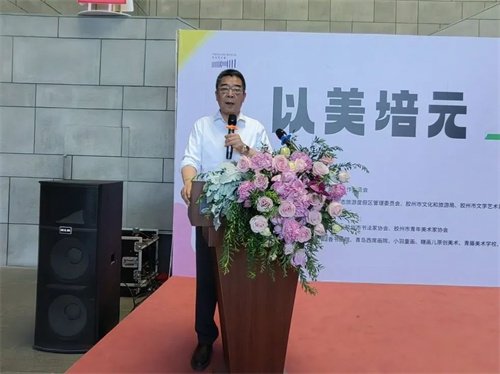 胶州市关心下一代工作委员会副主任王振门代表胶州市关工委讲话并宣布画展开幕