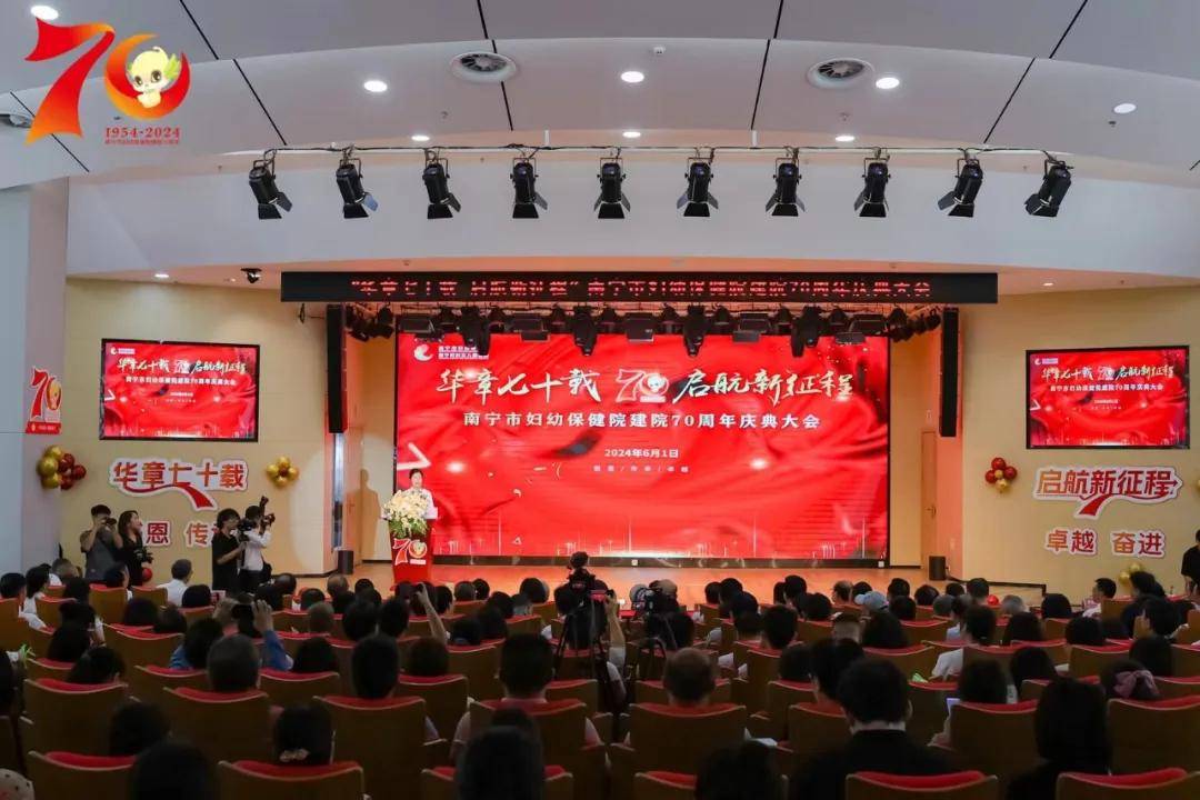 6月1日,南宁市妇幼保健院隆重举行“华章七十载 启航新征程”建院70周年庆祝大会,标志着这家历史悠久的医疗机构迈入了崭新的发展里程碑。活动吸引了市委、市政府领导,自治区卫生健康委领导,受邀单位代表,媒体朋友,患者家属,以及院内各部门的医护人员代表约300人共襄盛举。