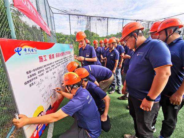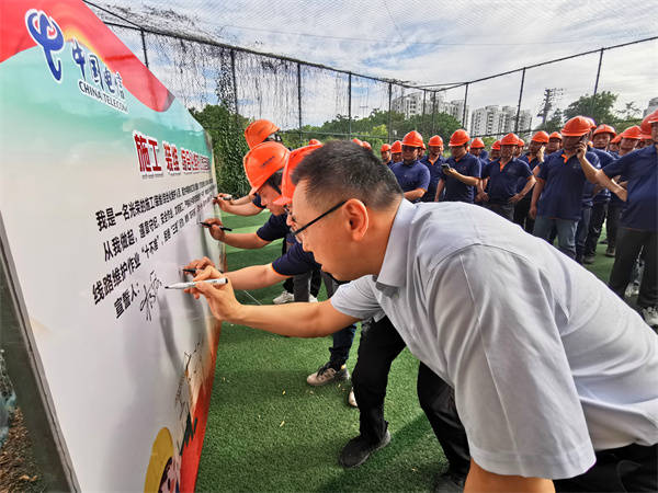 6月1日,中国电信淮安分公司市区全体装维人员举行安全宣誓及“安全承诺践诺”签名活动,以 “人人讲安全、个个会应急——畅通生命通道”为主题,持续树牢安全红线意识,提升全体装维人员安全素质。