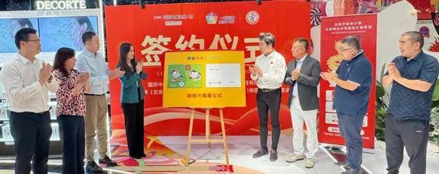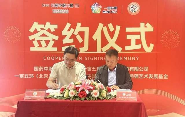 全体嘉宾在活动现场合影 2024 年 6 月 6 日,中国文学艺术基金会熊猫艺术发展基金与一亩五环(北京)体育有限公司战略合作签约仪式暨“熊猫中中之辗转球”国版明信片发行仪式在国药中服免税北京店隆重举行。中国国际医药卫生有限公司国际业务协同中心副总经理刘小宝,国药中服免税华北大区副总经理、北京店、天津店总经理李江玲女士,国药中服免税华北大区财务总监张克,中国文学艺术基金会熊猫艺术发展基金发起人、著名熊猫画家刘中,熊猫艺术发展基金名誉理事长张敏女士、秘书长徐大伟,《集邮》杂志社社长、总编丛志军,一亩五环(北京)体育有限公司董事长杜一鸣,北京金色河畔总经理马占光,拉菲罗斯柴尔德高管吴昊,太空舱酒业创始人、董事长葛腾飞等嘉宾济济一堂,共商熊猫艺术助推体育事业发展大计。