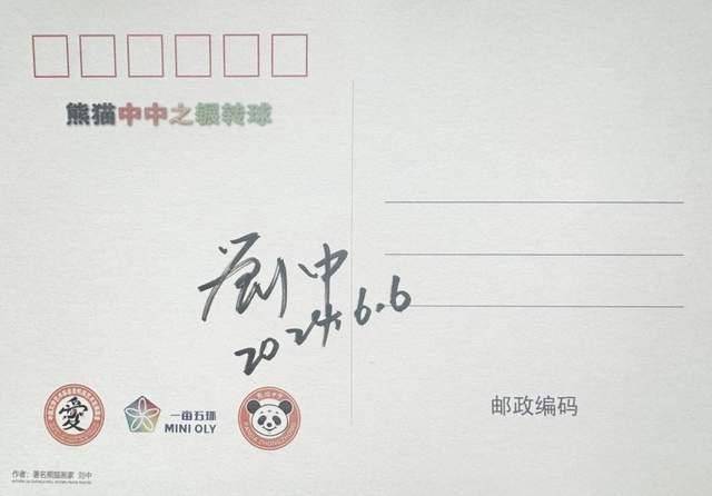 著名熊猫画家刘中签名的“熊猫中中之辗转球”国版明信片背版 现代奥林匹克运动发起人顾拜旦曾提出“将艺术和文学与体育结合起来,以确保奥运会的伟大性”的倡议。今天,两家机构达成战略合作协议及“熊猫中中之辗辗和转转”IP 形象亮相,则是对中国特色体育强国之路的助力和实践,也必将推动艺术和体育事业高质量协调发展,共同为社会提供强大正能量。 |