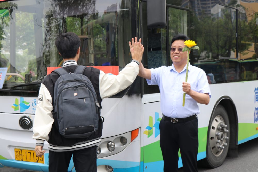 6月7日上午,淮安中学教育集团董事长陈进,淮安中学党委书记、校长于敏率校务会成员,和家长们一起为到校外考点参加高考的1159名学生送行,并向他们送上美好的祝福,祝愿他们高考取得优异成绩。