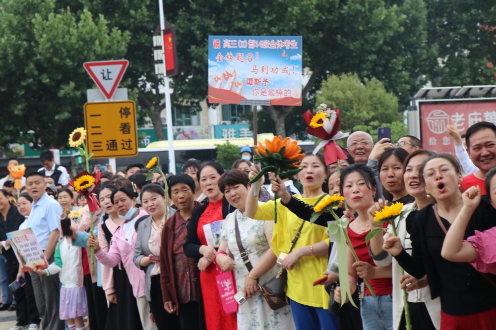 校门外人头攒动,很多家长来为孩子送考,他们挥手欢送,高喊:“加油加油!淮中必胜!”场面壮观,气氛热烈。许多家长拿起手机,记录下这动人的场景。
