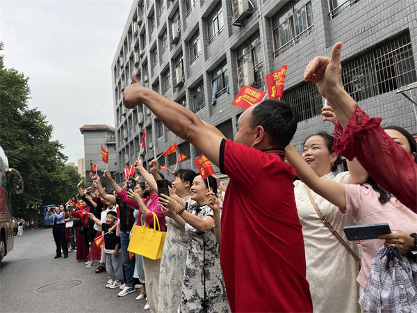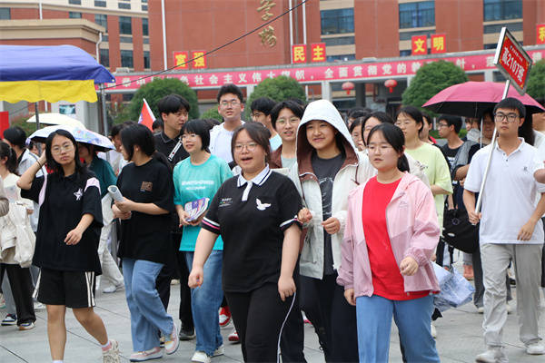 随着第一场语文科目考试终了铃声响起,考生们有序走出考场。他们的脸上洋溢着喜悦的笑容,家长们纷纷迎上前去,给孩子一个温暖的拥抱,送上最真挚的祝福。