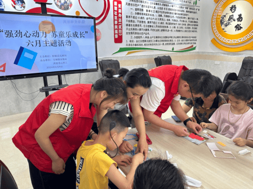------马坝镇未保站、鸿恩爱心社工“六一”活动精彩纷呈 近日,为庆祝“六一”国际儿童节,盱眙县马坝镇未成年人保护站携手鸿恩爱心社工,精心策划并开展了以“强劲心动力 淮童乐成长”为主题的宣传月活动。此次活动旨在通过丰富多彩的形式,增进未成年人之间的友谊,培养他们的创意和实践能力,同时传递爱与关怀,让每一个孩子都能在欢乐中成长。