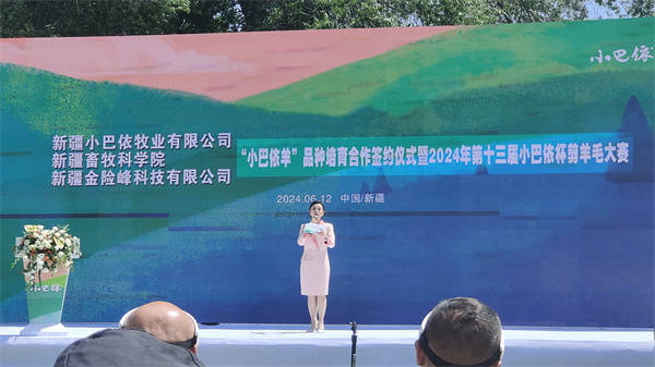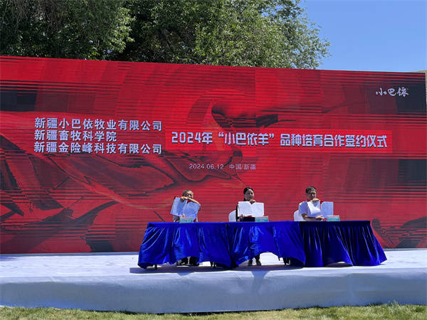 2024年6月12日新疆小巴依牧业有限公司与新疆畜牧科学院畜牧业质量标准研究所、新疆金险峰科技有限公司,于乌鲁木齐市米东区白杨河乡玛蓝鲜有机生活园隆重举行“小巴依羊”新品种培育合作签约仪式,并同步启动2024年第十三届“小巴依杯”剪羊毛大赛。