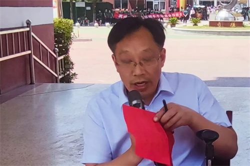 在壮行仪式上,我校党支部书记、校长田峰首先作中考出征总动员讲话。他给完成学业的九年级学子送上最真挚的祝福,语重心长地叮嘱他们做好一切考前准备工作,信心百倍地迎接中考挑战。