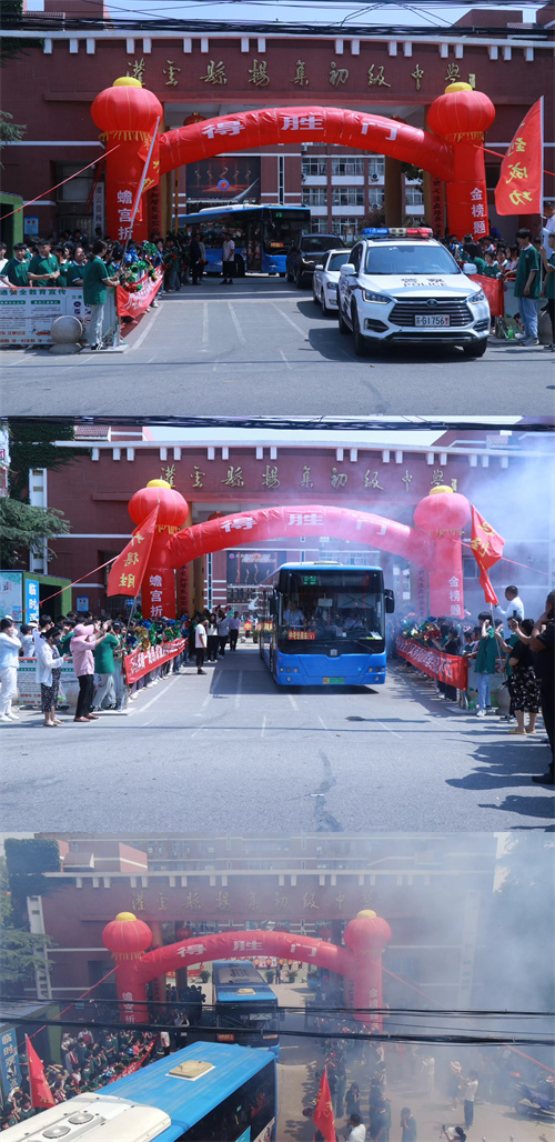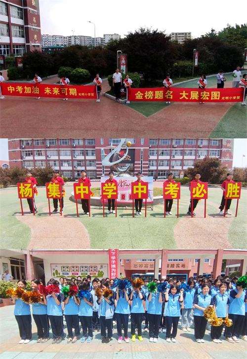 “中考加油,未来可期”、“金榜题名,大展宏图”、“杨集中学中考必胜”。壮观而令人震撼的送行场面,不仅承载着学校、家庭和社会对九年级学子的美好祝愿,也让七、八年级的学弟学妹们提前感受到中考的别样氛围。