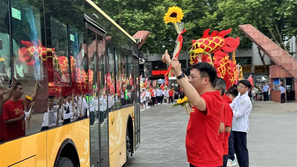 ![]() ![]() ![]() ![]() 7点18分,初三学生乘坐汽车启程出发,前往校外考点。学校领导在大门两侧手持向日葵,微笑着、竖起大拇指,给每一位学子送去祝福,鼓励他们从容应考,放宽心态。 ![]() ![]() ![]() ![]() ![]() 初一年级的学弟学妹们手持横幅,手捧鲜花和向日葵,排列在大门两侧欢送初三学生,他们以灿烂的笑容、温馨的祝福和热烈的欢呼为出征中考的学长学姐们点赞加油。 ![]() ![]() ![]() ![]() ![]() ![]() ![]() ![]() ![]() ![]() ![]() 当汽车缓缓驶出学校大门时,无数学生家长挥手欢送,祝愿同学们提笔从容,未来皆坦途! ![]() ![]() ![]() ![]() ![]() ![]() ![]() 送考专车内,考生面露微笑,自信坦然,展示了迎考的最佳状态;送考途中,同学们还相互鼓励,预祝考出最佳成绩。 ![]() ![]() ![]() ![]() 少年且踏浪,乘梦越山海,看长路,霞光万丈。笔底云烟,星光不负,愿六月高奏凯歌。前路浩荡,万事可期,愿少年们斗志昂扬,所行皆为坦途!
