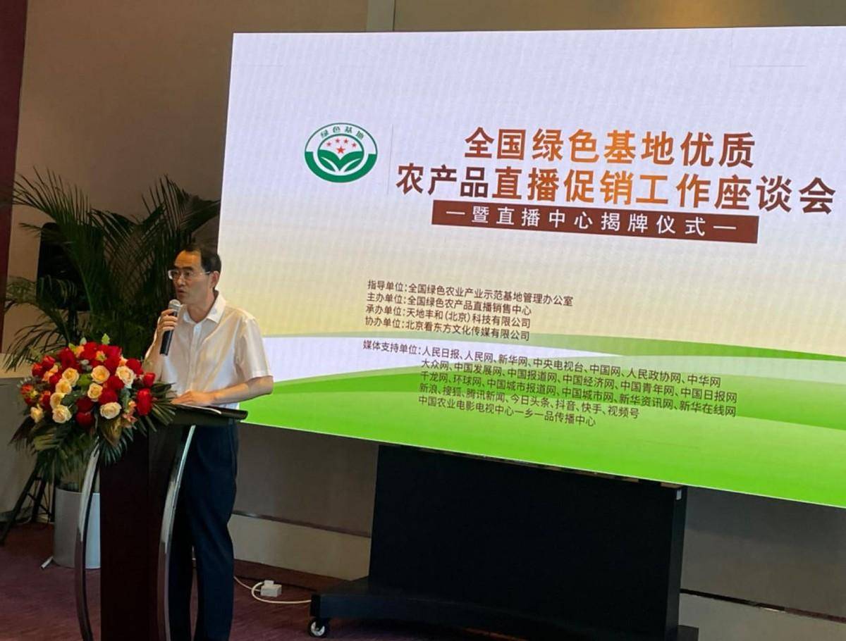 全国绿色农产品直播销售中心主任戚霖韬同志发言表示,全国绿色农产品直播销售中心将专注于绿色产品展销质量安全、品质优良的地理标志、绿色食品、有机食品、全国名特优新农产品等绿色优质农产品。通过中心的专项宣传、推介展销、线上线下产销对接等方式加强市场推广,畅通产销衔接,进一步拓宽优质农产品的营销渠道、市场空间,指导绿色农产品“品质-品控-品牌”的农产品标准化全产业链的发展。打造“绿色、特色”的优质农产品品牌,推动全国绿色优质高效农业产业的发展。真正做到品销安全,助农助企的发展目标。