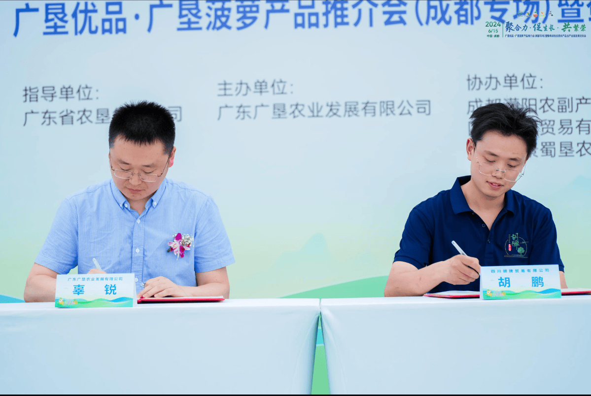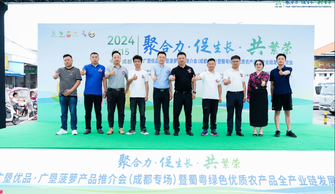 聚合力·促生长·共繁荣,6月15日,广垦优品·广垦菠萝产品推介会(成都专场)在成都雨润市场圆满举行,广东广垦农业发展有限公司、雨润农产品集团、四川胡牌贸易有限公司、四川红景蜀垦农业有限公司、四川美时鲜农业有限公司、成都鑫农链公司、成都寿发农业公司、成都群畅农业有限公司等企业代表人参与了此次活动。