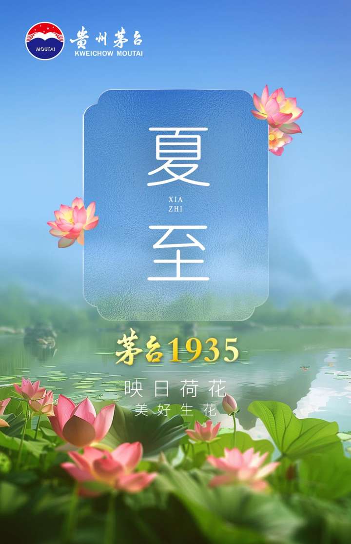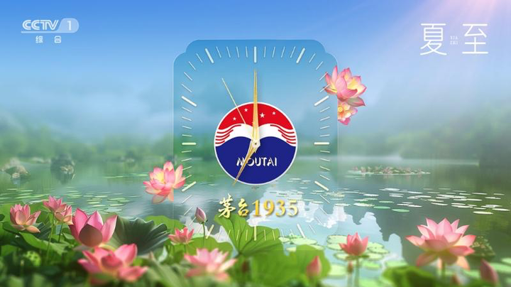 “昼晷已云极,宵漏自此长。……绿筠尚含粉,圆荷始散芳。”——1200多年前的一个夏至日,大唐官吏韦应物不堪暑热,在公务之余躲到池塘边歇凉。在清新馥郁的荷花香里,写下了这首脍炙人口的《夏至避暑北池》。 1200多年后的今天,天气依然炎热、荷香依然四溢。在央视《新闻联播》前“茅台1935”的整点报时表盘上,一池荷花娇艳绽放,池中山色掩映,池畔雾霭朦朦,“茅台1935”用这样一池“映日荷花”提醒观众:一年中白昼最长的一天——夏至到了。