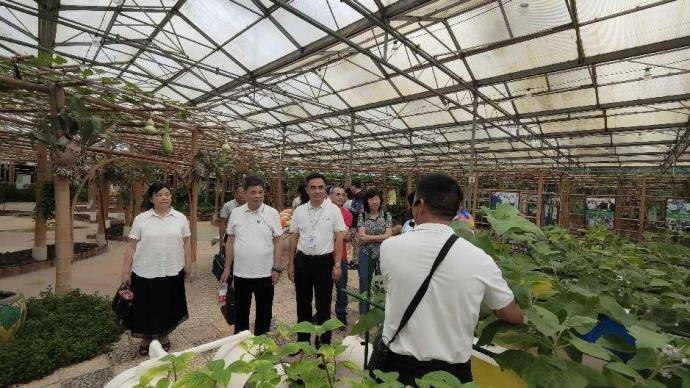 万物盛情逐光影,人间至美在夏至。 6月21日夏至,美丽的相思湖波光潋滟,蜻蜓点水翩飞。夏至的太阳特别火热,相思湖东岸,地处闹市的八桂田园更是热火朝天。下午4时,应八桂田园诚邀,林忠伟(广西)产教科咨政联盟智库专家团一行25人赴位于南宁市相思湖东路19号的八桂田园景区开展主题为“面向东盟的现代农业示范园与广西文旅有效融合高质量发展”学习交流调研活动。广西农业职业技术大学教授许文林处长,八桂田园前总经理、广西农业职业技术大学副教授黄海生,广西八桂农业科技有限公司总经理赖军,副总经理覃连红,生产部经理韦志林,旅游贸易部经理庄海琼等领导热情迎接专家团的到来。调研活动就如何进一步做好现代农业示范园区的展示工作,如何用好盘活中国东盟博览会的资源,如何做好东盟的大文章,特别是现代农业示范园区与广西文旅有效融合做交流座谈。同时,对如何实现现代农业化、特色产业升级、品牌建设及人才培养等议题也展开了深入探讨。会场气氛热烈,大家集思广益,出谋献策,为实现八桂田园高质量发展,为广西文旅事业作贡献。 八桂田园游人醉 现代农业风光美 活动的第一项是调研参观八桂田园果蔬百花大棚。八桂田园在夏至太阳的照耀下,活力四射,光彩照人。一进入园区,大家就被园内整齐的花卉大棚散发出的芬芳吸引住了,沁人心脾,让人心旷神怡。调研参观由广西八桂农业科技有限公司总经理赖军全程陪同,广西八桂农业科技有限公司生产部经理韦志林讲解。参观按从南向北的顺序进行。韦志林经理首先介绍了八桂田园的基本情况:广西八桂田园是一个集旅游观光、生产、科研、信息、科普教育为一体的综合性现代农业科技观光园,位于广西南宁市大学相思湖东东路19号,距市中心10千米。这个园区由广西八桂农业科技有限公司承建与经营,是广西现代农业技术展示中心,也是AAAA级景区。园区综合了各类型的农业设施供游客观光、体验,包括花艺超市、百卉园、中草药园、食用菌生产场、珍奇动物馆、昆虫标本馆、农产品电商营销中心、植物迷宫、百花宫、农业科普长廊、闲情大草坪、百果园、民族木寨、露地蔬菜采摘区、网室栽培区、单棚采摘区、多连棚生态种植采摘大棚、绿色通道、儿童乐园、烧烤区、壮乡文化体验馆等景点。每年到八桂田园来参观的外地人次达30几万,园地创收最高的达年1000万元以上,初步实现了产出与收入的良性发展。韦志林通过一系列生动的展示与讲解,让专家团了解八桂田园自1999年成立以来的发展历程、战略布局,以及在推动农业现代化、科技创新与产业升级方面所取得的一系列成果。八桂田园作为旅游景点向市民开放以来,以现代农业观光、果蔬采摘、农业DIY、户外休闲等农耕游乐项目吸引了大批游客,并为游客提供了以特色有机农产品、观赏瓜果产品、珍稀花卉、名优种子种苗及各类特色农业纪念品为主的旅游产品,已成为南宁市市民及来邕游客进行农业观光和体验农业的首选之处,“八桂田园生态欢乐游”已成为突出品牌。 专家团首先参观了现代农业观光区。这是100000㎡的现代农业设施,既有生产性又有观光性,使游客在观光的过程中了解到先进农业设施和生产技术,寓教于乐。 接着调研了野菜瓜果采摘区。该区约60000㎡的超大型“绿色超市”和80亩的露地栽培区,包括网室、连栋大棚、单棚等现代农业栽培设施,常年为游客提供50多种有机水果蔬菜,让游客自己动手,过足摘菜瘾,感受自摘之清爽味道! 紧接着调研农业DIY体验区。该区为广大市民、学生、家庭开辟的农业体验区,寓教于劳,在自己认领的菜地里,感受种植与收获的乐趣,体验都市农耕,享受一份田间作息的清闲。