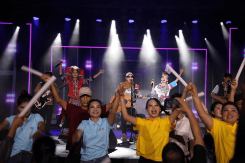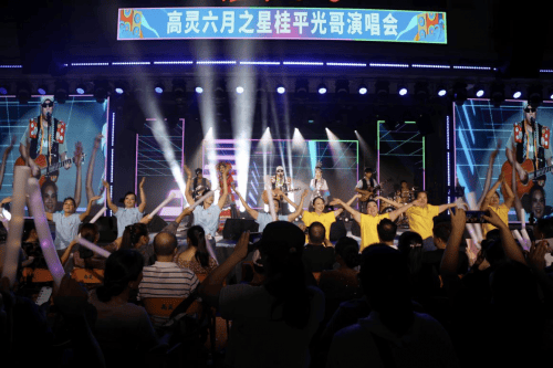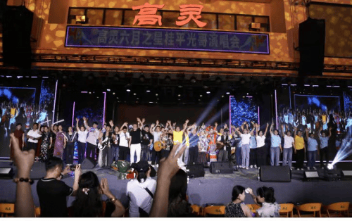 据了解,光哥是一位来自广西桂平的农民朋友,他出生于1984年,在人生的道路上,他经历了不少的艰辛和痛苦,然而,光哥真的不一般,面对困难他从不低头。他乐观进取,抚养儿子、善待老人。从工厂的泥水工,到养猪养鸡,再到卖水果当个体户,每一步都是通过辛勤付出与不懈努力。2019年6月,光哥开始分享自己的歌唱视频,凭借出色的表现,不断拼搏的精神,实现了从普通农民到知名网红的蜕变,可以说他创造了奇迹和不断书写着非凡的人生。光哥走近观众,他以演唱流行音乐为载体,现场创作歌词;他的歌声,或高亢、或深情、有激情奋进、有绵绵细雨,书写着现场观众和人民群众的故事与情怀,赢得了广大观众的一致好评,独有的个性和特色使他拥有粉丝达一千多万人。 幸福歌里过,有歌也舞。值得再提的是,高灵有文化,还有光,有高灵乐队。实力唱将老莫,主音吉他谢老师,贝斯手小莫,鼓手蒙老师,他们都曾多次受邀参加全国各级电视台音乐节目录制、全国音乐节演出,各大音乐赛事评委。高灵乐队在整台演唱会中的出色表现随处可见。歌舞串烧《站台,求佛,月亮里的阿妹,小芳,爱之初体验》……一个个充满活力和创意,让现场感受到各种音乐舞蹈风格之间的巧妙碰撞与完美融合,彰显着高灵这张文化名片。