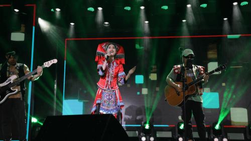 天星明月照耀大地,人们相互爱护,终成为佳丽;船行险滩傍双桨,花开不败永飘香;愿做双鸟同林宿,愿做双鸟游周林,愿做白雁比翼飞,不怕雷雨风霜烈。陈宇演唱的高亢音色,给演唱会增光和添彩。她是音乐表演专业硕士研究生,广西三江文化旅游形象代言人,广西山歌学会会员。曾获多项荣誉,有丰富的演出经验。在这里,我们能够欣赏到陈宇和她的队友演唱了侗族歌曲《天星月明》《壮族敬酒歌》。演唱会在《千千阙歌》的热情歌声落下帷幕。