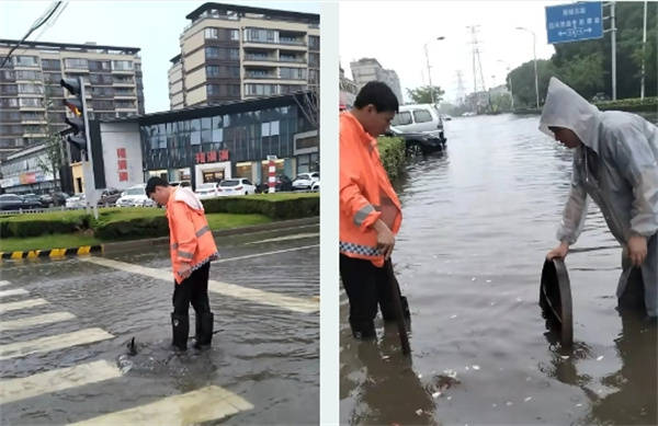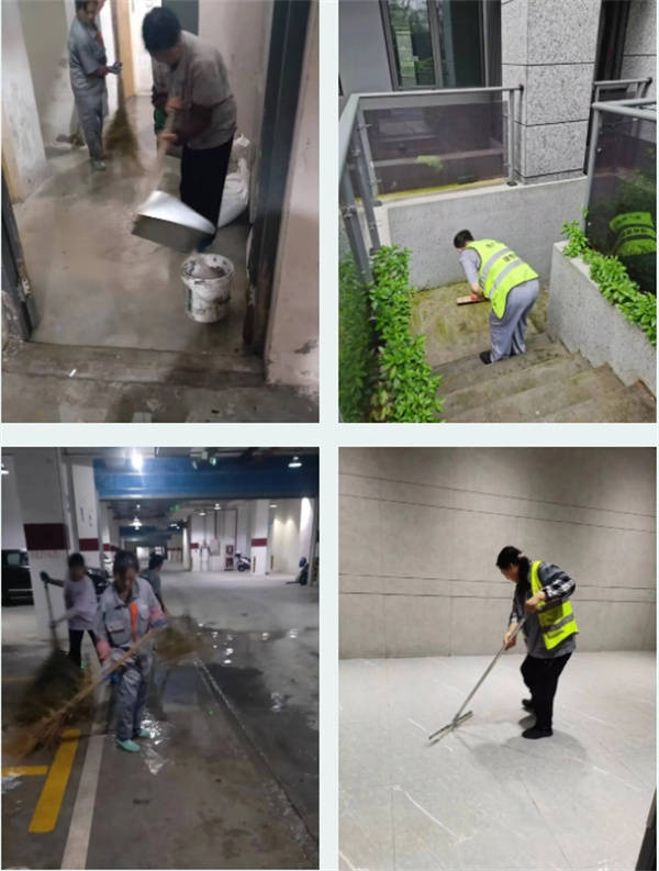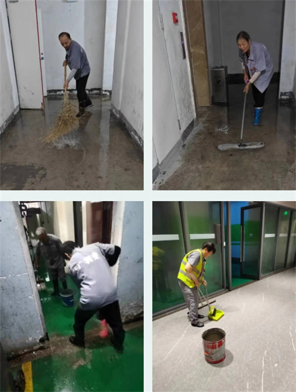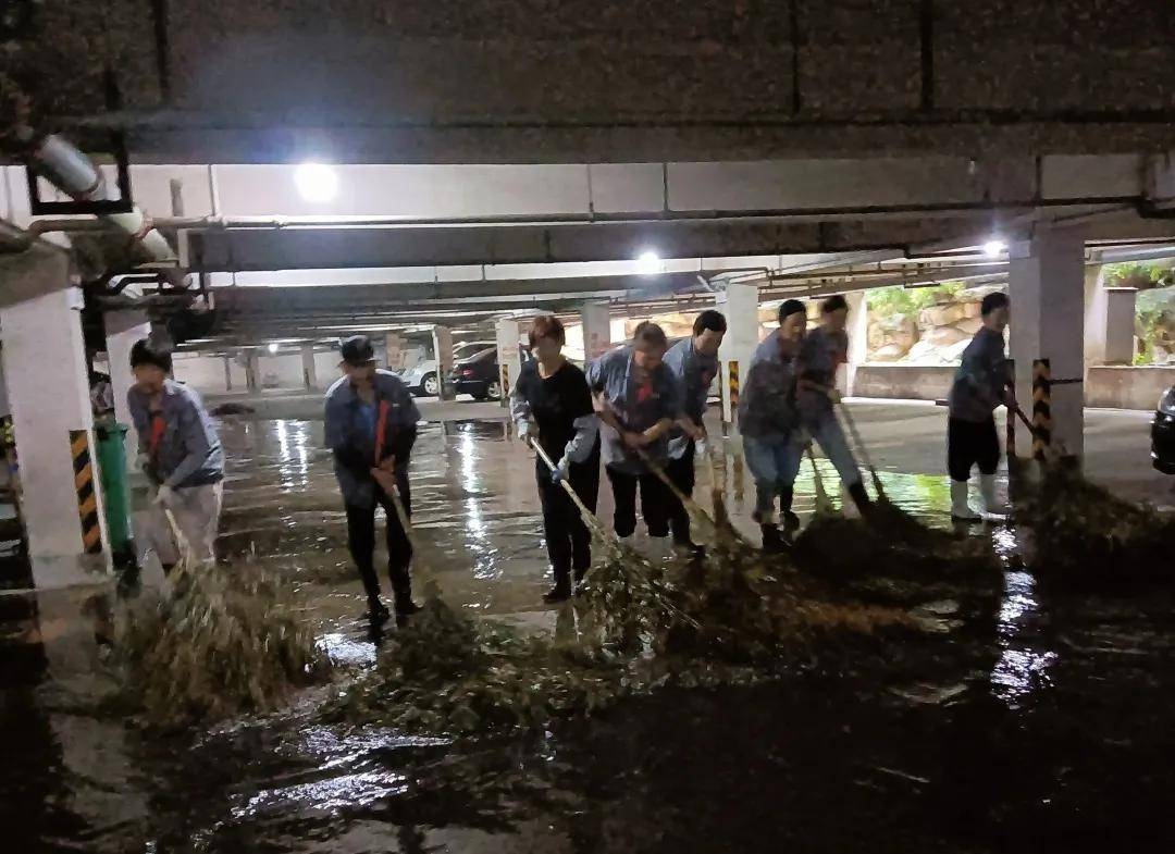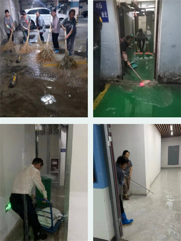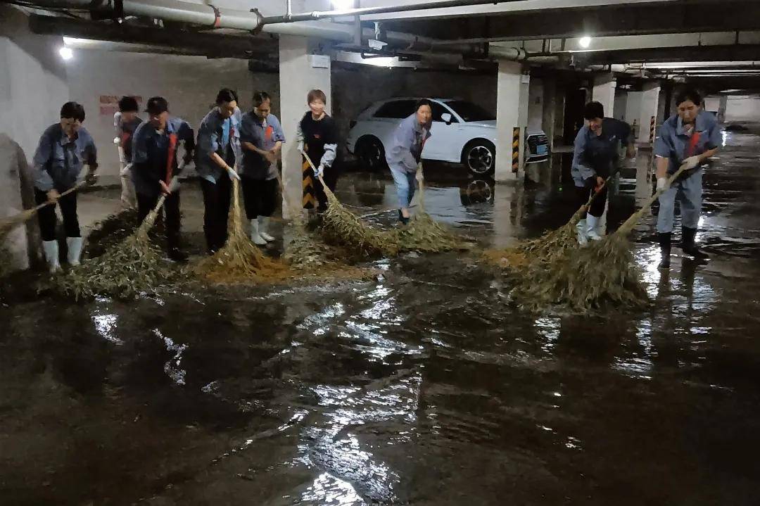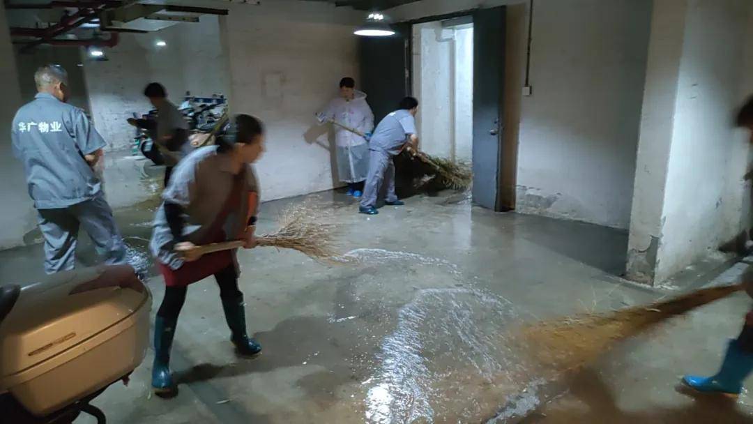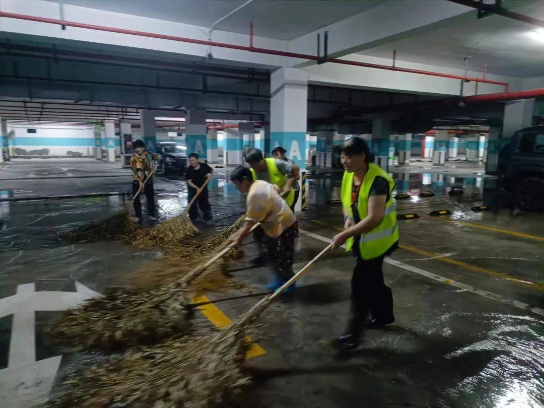更值得一提的是,面对部分路段积水严重的情况,华广物业的工作人员们不畏艰难,积极投入到排水工作中,迅速响应,修理维护地下室、地面等设施设备。他们的身影在雨中来回穿梭,用实际行动诠释着对职责的忠诚和对居民的一份安全承诺和保障。
