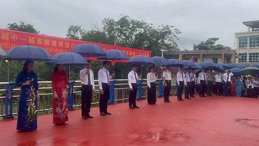 6月25日上午10:30,中国防城港市峒中公路口岸(含里火通道)与越南横模口岸、北峰生通道正式对外开放,标志着中越两国边境贸易和旅游合作迈入新纪元。两国人民共同见证了这一历史时刻,预示着双边经济和文化交流将进一步加强。