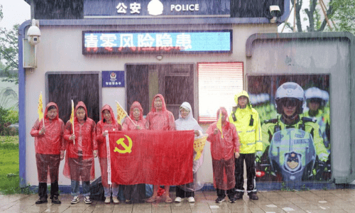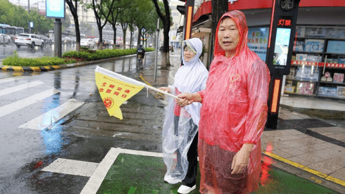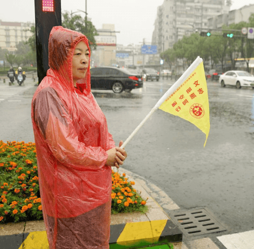 这次为期三天在执行早、晚上下班两个高峰时段维护交道秩序的 过程中,志愿者们的行动显示出三大亮点:一是党员率先垂范,带动入党积极分子和优秀志愿者,以"学雷锋.迎七一"为旗号,展示了新时代党员志愿者们"不忘初心,牢记使命"的精神风貌和模范带头作用。二是明知天气预报连续三天有强降雨和雷电过程,但大家亳不畏惧,都觉得天气越恶劣,交通运行越更需要一份安全和责任。老天一直大雨不停,志愿者们穿戴的雨衣不管用,雨水把他们淋得浑身湿透,但在这困难面前大家无怨言,不退缩,因为这种精神已成为颐和公益志愿者们的光荣传承。三是参加这次志愿者活动的16人中,其中最大年龄72岁,还有50年党龄的老同志,尤其是好几位50岁以上的"奶奶"们,也不甘示弱,入党积极分子和优秀志愿者更是首当其冲。