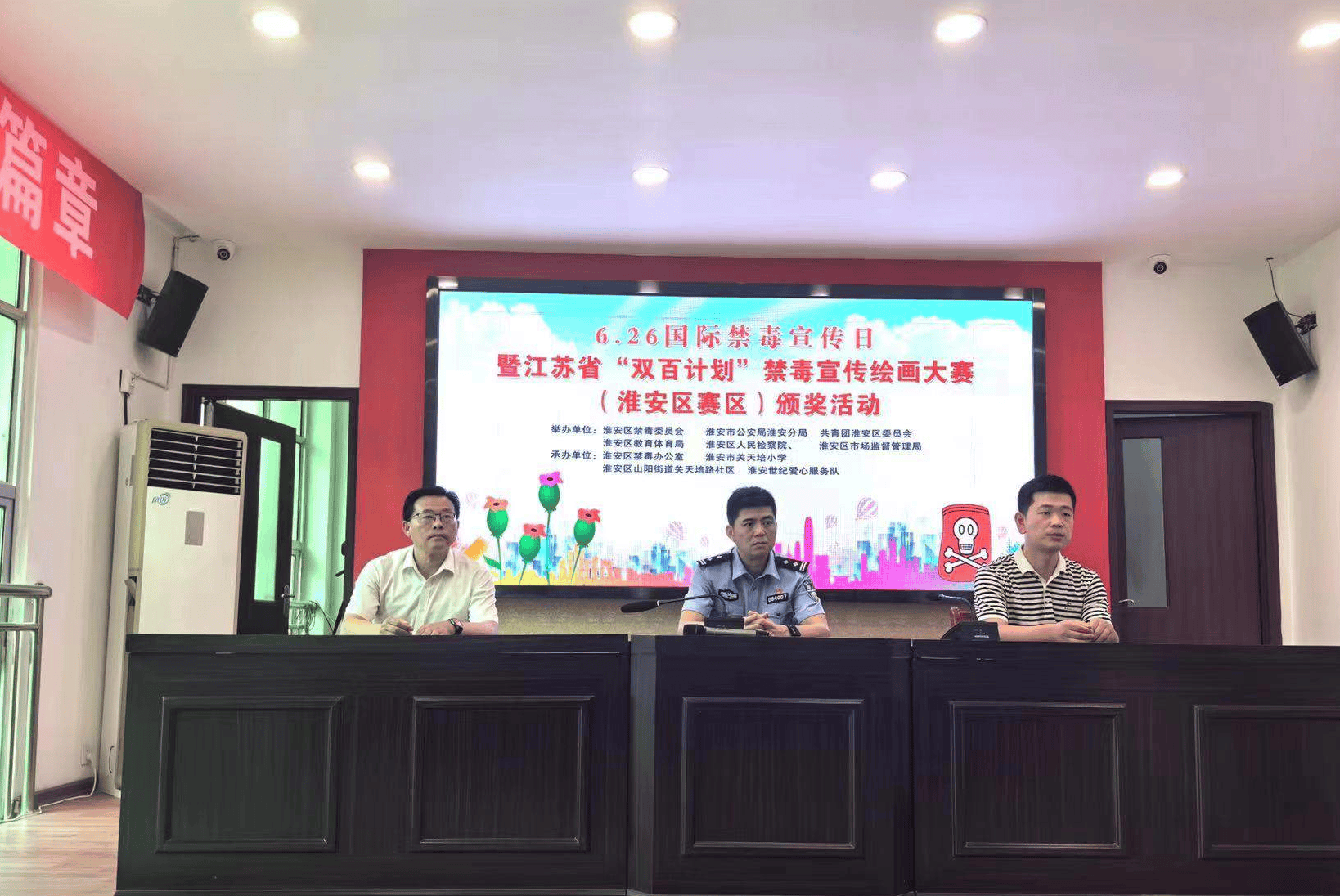 为迎接第37个“6.26”国际禁毒日的到来,25日下午,淮安区禁毒办会同区禁毒委相关单位在关天培路社区开展以“防范青少年药物滥用”为主题的禁毒宣传暨江苏省青少年禁毒宣传“双百计划”淮安区禁毒绘画优秀作品颁奖活动。