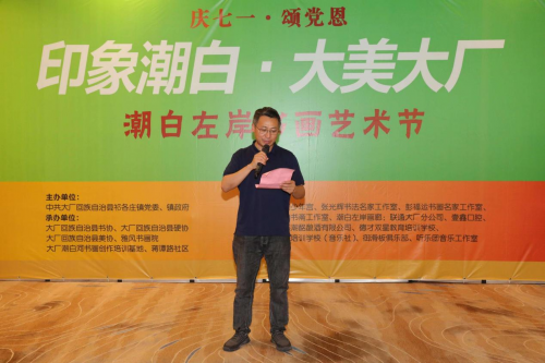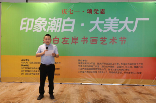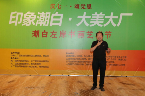 为讴歌新时代经济社会发展的丰硕成果,弘扬中国书画艺术,赓续中华优秀文脉,描绘美丽大厂的崭新画卷,全力推进中国式现代化大厂场景建设,促进京津冀一体化协同发展,精心打造潮白左岸文旅长廊,由大厂回族自治县祁各庄镇党委、镇政府主办,大厂回族自治县书协、大厂回族自治县美协、大厂回族自治县硬协、雅风书画院、大厂潮白河书画培训创作基地、蒋谭路社区协办的“庆七一·颂党恩”——“印象潮白·大美大厂”潮白左岸书画艺术节系列活动于6月29日在大厂潮白五环公园正式拉开帷幕。
