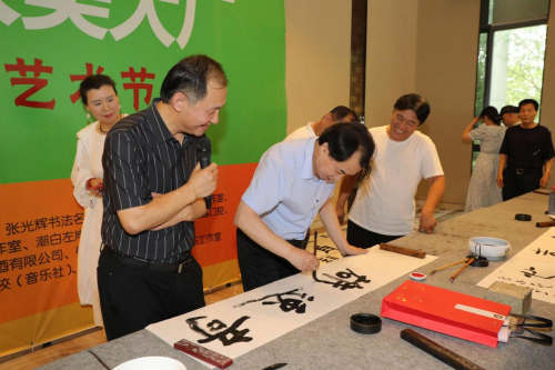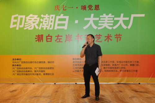 大厂回族自治县原政协主席、书协、美协荣誉主席万国悦宣布艺术节开幕(郭景森 王江摄) 艺术节组委会主任、大厂县委原常委政法委书记、大厂县书协主席、硬协主席、大厂潮白河书画培训创作基地主任于成龙在讲话中说,赓续中华文脉,传承中国书画艺术,让书画家走进社区、贴近百姓,深入生活;让书画作品进入千家万户,提高大众欣赏水平,丰富百姓精神享受,是书画家的责任担当,我们要全力打造大厂潮白左岸文化艺术长廊,为推进京津冀一体化协同发展贡献力量。