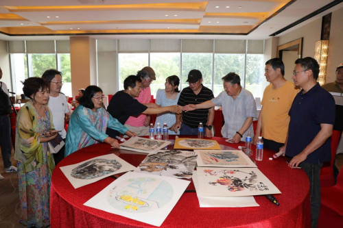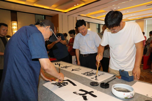 来自北京的书画家向艺术节组委会赠送书画作品(郭景森 王江摄)