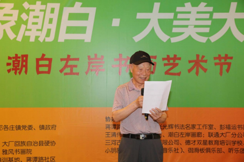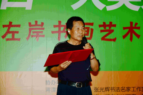 大厂回族自治县原县委常委、政法委书记,县书协、硬协主席,大厂潮白河书画培训创作基地主任于成龙讲话(郭景森 王江摄)