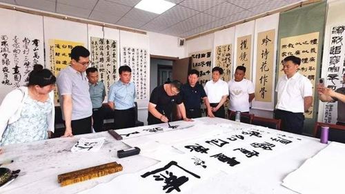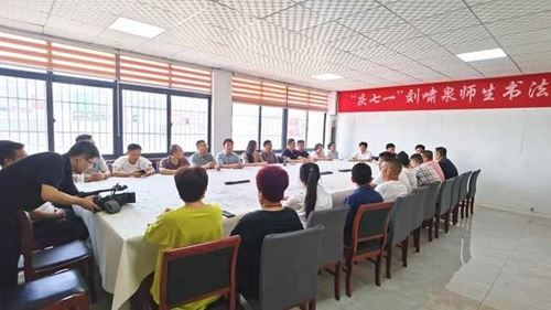翰墨颂党恩,丹青绘华章。为庆祝中国共产党建党103周年,弘扬党的优良传统,展现新时代的精神风貌。6月30日,由枣庄市电工产业商会主办,市中区龙山街道商会承办,枣庄市天衢书画院协办"庆七一 颂党恩"庆祝中国共产党建党103周年刘啸泉师生书画作品展在天衢书画院隆重举行。枣庄市工商联党组副书记、副主席龙翼天,中国书法家协会会员、国家一级美术师、枣庄市天衢书画院院长刘啸泉,枣庄市电工产业商会会长李伟,枣庄市电工产业商会副会长、市中区龙山街道商会会长刘勇等领导嘉宾出席。