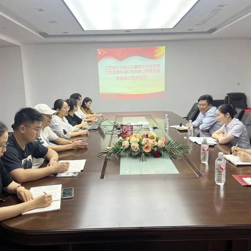 为积极探索新时代党建工作的新思路、新途径、新方法,充分发挥党建共建优势互补、资源共享、力量整合的积极作用,扎实推进基层党组织建设,7月2日下午,江苏国鹰环境科技有限公司党支部与江苏银行无锡分行黄巷支行党支部举行党建结对共建签约仪式。国鹰环境党支部时国民书记和黄巷支行党支部徐研书记出席活动。 双方四组结对共建党支部围绕组织建设、党建工作成果、主营业务发展情况等进行了座谈交流,并签订了《党建共建协议书》。双方表示,将切实以党建为引领,按照“优势互补、资源共享、全面协作、协同发展”的总体思路,通过政治理论联学、优势资源联享、实践活动联动,共同开启组织共建、项目共推、资源共享、发展共促的新篇章。