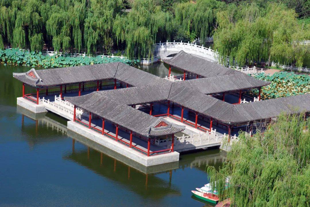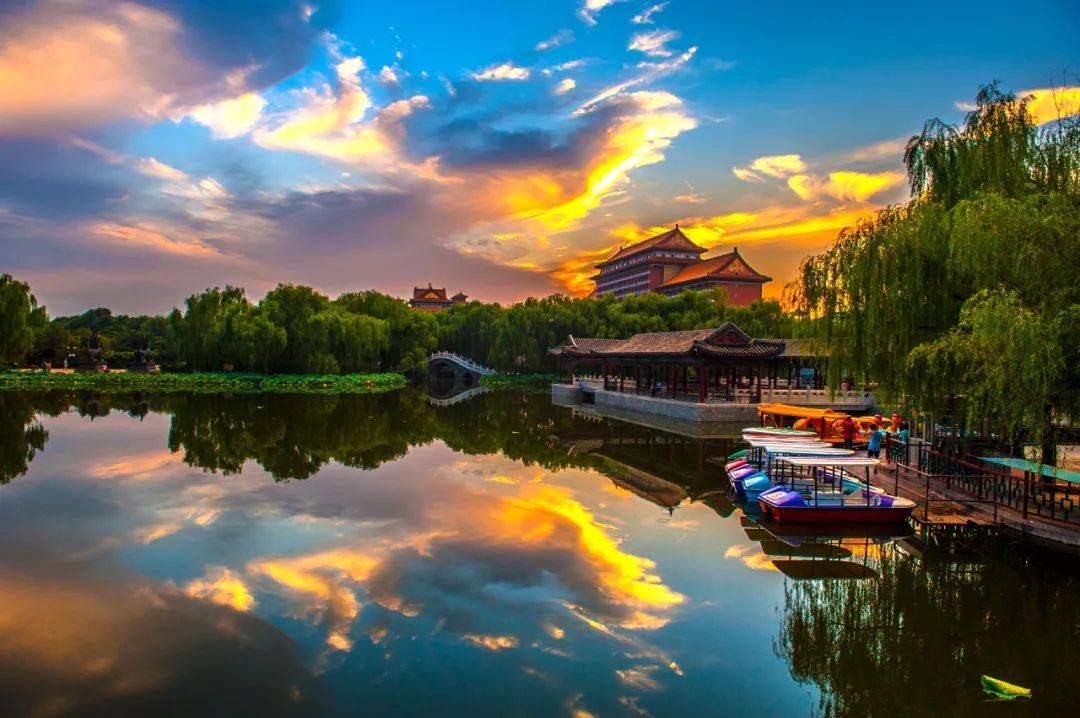 环城步道实景图 新建的环城步道必将成为游客们休闲散步、慢跑健身的绝佳选择。这条总长约为5000米的步道环绕内外城,沿途依托现状林地,局部营造了樱花、海棠、巨紫荆、丁香、观赏草等植物主题景观,为游客带来一场视觉与心灵的双重盛宴。 平湖秋月