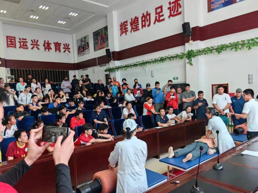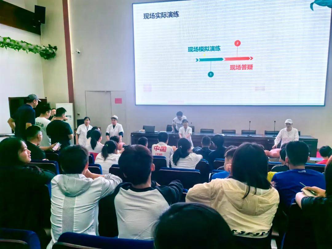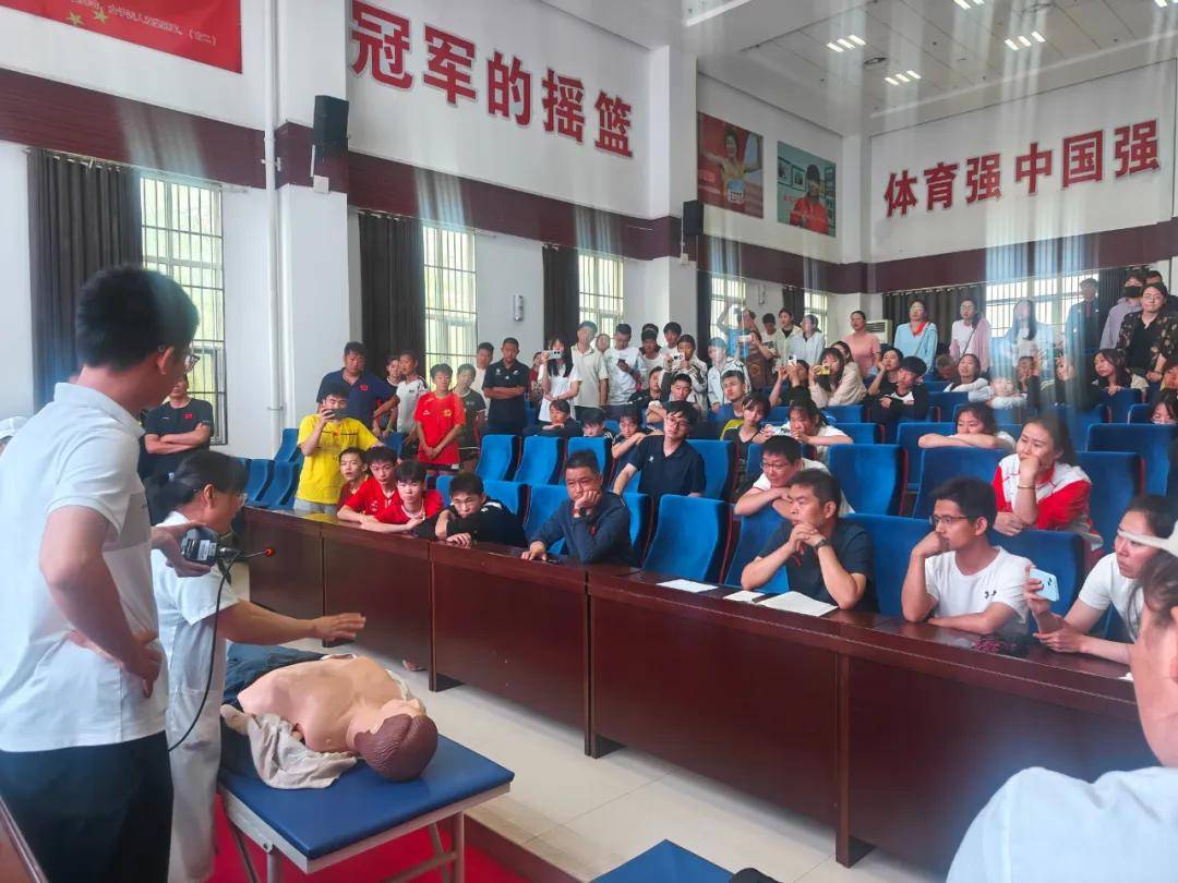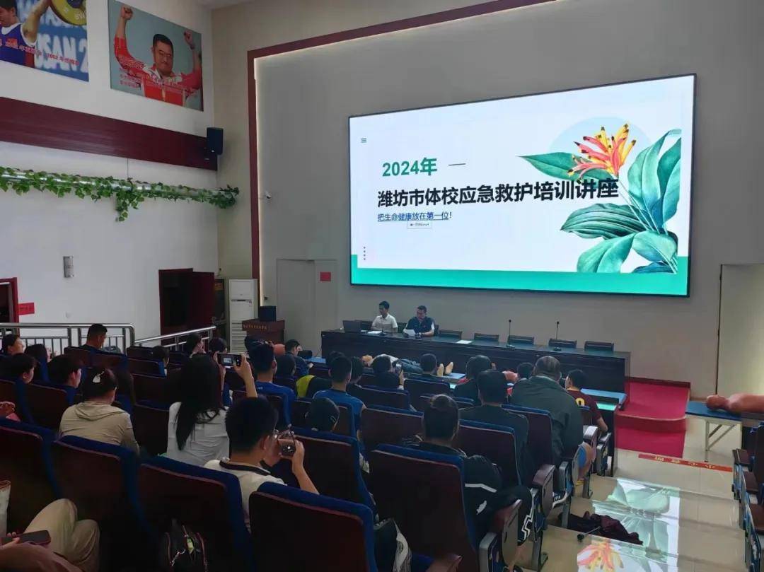 随着体育事业的蓬勃发展,运动员的身体健康与安全成为社会各界关注的焦点。市体校作为培养体育人才的重要基地,运动员们不断挑战自我的同时,师生在激烈的训练和比赛中遭受意外伤害、突发疾病也时有发生,因此面临的风险不容忽视。为了提升师生的安全意识与自救互救能力,潍坊市体育运动学校于7月4日上午在学校报告厅举办应急救护培训讲座,潍坊市体育运动学校校长唐卫华、副校长张勇、校长助理陈伟列席讲座,学校教练、班主任、各训练队队长及学生共200余人参与讲座。
