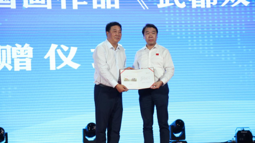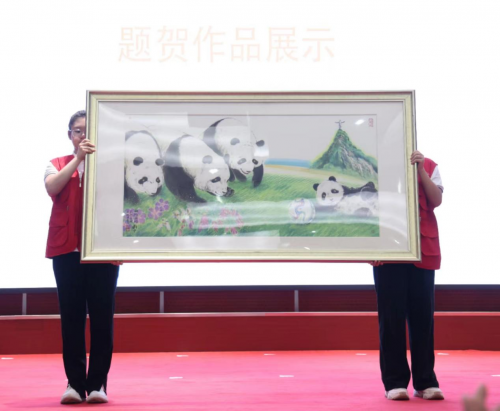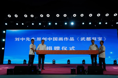 刘中先生的巨幅原创中国画作品《盛世双宝》捐赠仪式