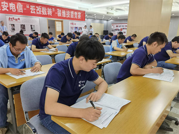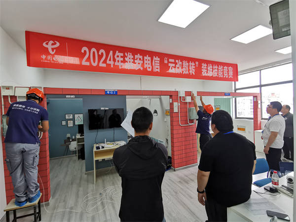 近日,中国电信淮安分公司举办2024年云改数转装维技能竞赛,全区近40名智慧家庭工程师在理论、实操、个人竞速等项目中展开角逐。图为装维实操比赛。桂宝林 孙信政 刘苏敏摄