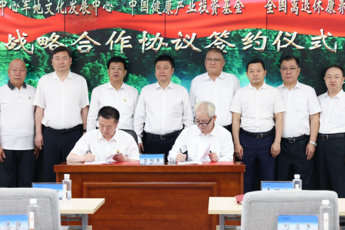 佘洪波 中央国家机关离退休干部康养基地健康管理办公室副主任兼秘书长、中国老龄健康促进工程智慧康养办公室执行主任(右) 王忠元 伊春森工集团党委委员、副总经理(左) 战略合作签约仪式——中国健康产业投资基金与伊春森工集团签署森林康养、自然健康、养老服务等领域战略合作协议。
