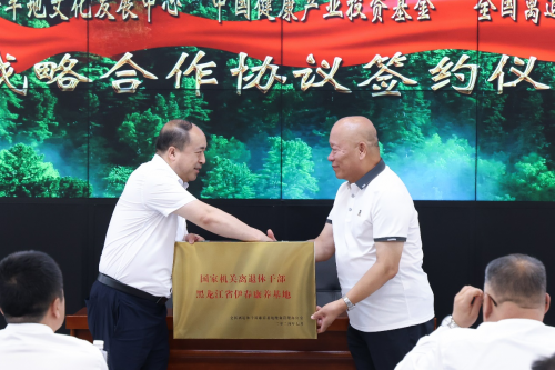 文化和旅游部艺术发展中心军地文化发展中心秘书长李树滨向伊春森工集团授牌 全国重点优秀项目授牌仪式——国家机关离退休干部康养基地授牌仪式。