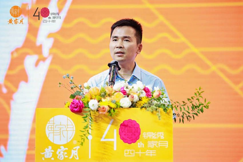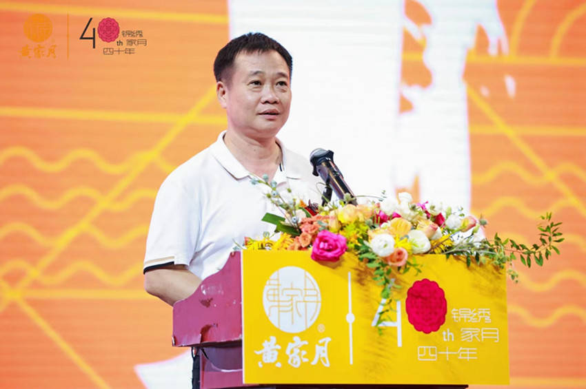 黄家月公司董事长黄庆强发表了热情洋溢的致辞。他回顾了黄家月四十年的发展历程,感谢了所有支持黄家月成长的员工、合作伙伴和消费者。他表示,未来黄家月将继续聚势谋远,致力于为消费者提供更优质、更健康的食品,同时加大研发投入,提升产品质量和品牌形象,积极拓展市场渠道,推动企业走向国际化市场。