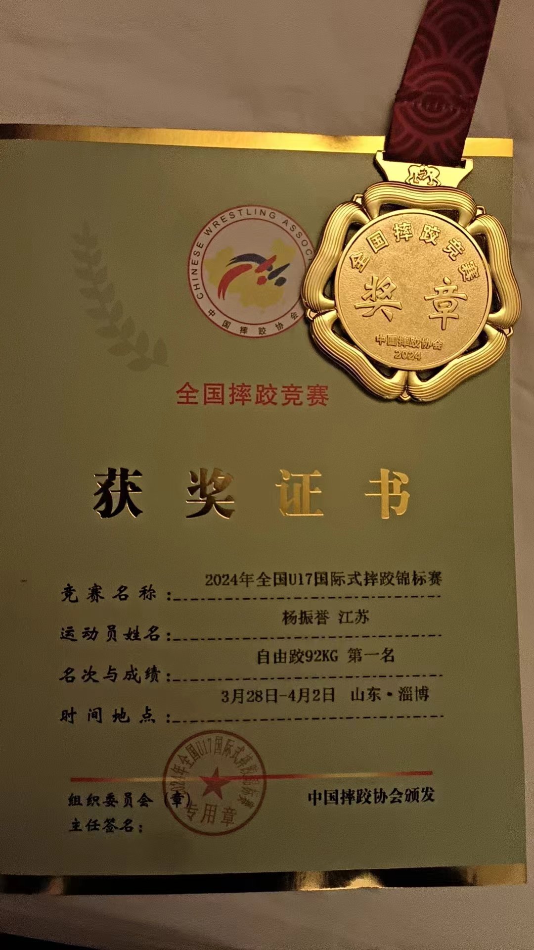 作者 汪正清 近日,2024年亚洲U17、U23摔跤锦标赛在约旦安曼落下帷幕,中国队收获4金8银5铜,并取得U17亚锦赛女子团体亚军。值得一提的是,响水籍选手杨振誉荣获男子自由跤92公斤级银牌。通过本次U系列亚锦赛,他再次积累了大赛经验,也找到了自身训练和比赛中存在的不足,将有针对性地投入下一阶段备战,力争在今年摔跤U17、U23世界锦标赛上创造佳绩。 ![]() 杨振誉今年17岁,江苏省响水县小尖镇吴庄人。在小尖中心小学读五年级的时候,杨振誉被县体育学校张大春老师“相中”,通过一系列的体能测试,最终到县体校就读。在张大春的指导下,从短跑、举重、摔跤到柔道,杨振誉处处展示出体能的天赋。2019年9月,杨振誉被盐城市摔跤队选中。 在盐城体校训练时,虽然体能各项训练指标都完成得非常好,但在与同龄的小伙伴“较量”时,他经常是被摔的那一个。即便如此,杨振誉依旧不言放弃,继续认认真真地练习着抱握、正挟、绕臂、过背摔……他始终坚信勤能补拙,下一次一定可以成功。由于训练刻苦,成绩突出,他最终于2022年8月又进入江苏省摔跤队训练,目前被抽到国家摔跤队集训。 训练场上就是这样,即使是99次的失败也不能放弃,目的只是为了第100次的成功。杨振誉在一次次的失败中总结经验,在一次次的跌倒中砥砺前行,这种品质也深得江苏省举重摔跤柔道运动管理中心班子领导及教练的喜爱。为了提升其身体素质条件,逐步达到并超过同龄人标准,他们反复研究并制定出详细的膳食营养补充和技能提升计划,重点保障杨振誉体能增长和专业技能提升的营养、教学方案、实战对抗、比赛经验积累等需求。 ![]() “前进一步,克服困难,就是一片光明。后腿一步,前功尽弃,就是万丈深渊……”每一次在电话里诉苦,杨振誉的启蒙老师张大春总是以严厉的口气鞭策、鼓励他继续前行。破皮出血、脚踝肿胀、韧带拉伤……每一次的伤痛,都会给杨振誉带来懊恼、焦躁以及各种情绪的交织缠绕。每每于此,张大春总是疼在心里,每天电话开导着杨振誉,密切关注他的心理变化及训练强度,以便及时做好调整。在张大春的鼓励下,杨振誉用数倍于队友的努力,弥补甚至超额完成安排的训练量,决心要以优异的成绩回报家乡。 璞玉要经过雕琢才会成为玉器,明珠散发光辉之前也会被尘土蒙蔽。摔跤运动作为一项对抗性运动,自身成长离不开高水平的对抗实战经验,正是看到了这种竞技精神,杨振誉积极参加外赛外训,以此踏出国门拓宽了眼界,见识了更加广阔的舞台。 功夫不负有心人,苦尽终得甘甜来。经过不懈努力和刻苦训练,杨振誉逐渐在各类比赛中崭露头角,获2024年全国U17,U18国际式摔跤锦标赛男子自由跤92KG金牌;今年5月16日-20日,中国中学生柔道摔跤精英赛暨U18世界中学生夏季运动会柔道摔跤选拔赛在山东威海举行,杨振誉将力量、技巧、智慧贯穿始终,凭借出色的表现荣获男子自由式摔跤92公斤级第一名; 7月7日,在2024年江苏省青少年摔跤锦标赛上,选手们身体对抗激烈迅猛,技术动作流畅连贯,每一次交锋都充满了紧张与刺激。杨振誉紧盯对手,伺机而动,灵活应用过胸摔、抱摔、潜入等技术动作,与对手搏斗。,最终凭借出色的表现,荣获92KG金牌。一次次摘得桂冠,也是杨振誉迈向成功的重要一步。 ![]() 心中有梦,终能圆。我们相信且期待,总有一天会让全国、全世界见证杨振誉的奇迹,并向所有人证明:杨振誉,真棒!在以后的人生赛场上,你会更棒! |