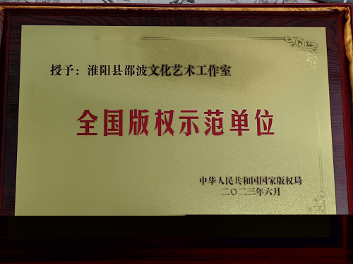 (“淮阳县泥泥狗邵波文化艺术工作室”,获得国家版权局颁发的“全国版权示范单位”)