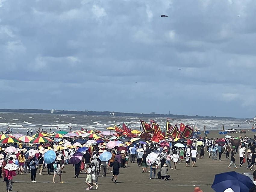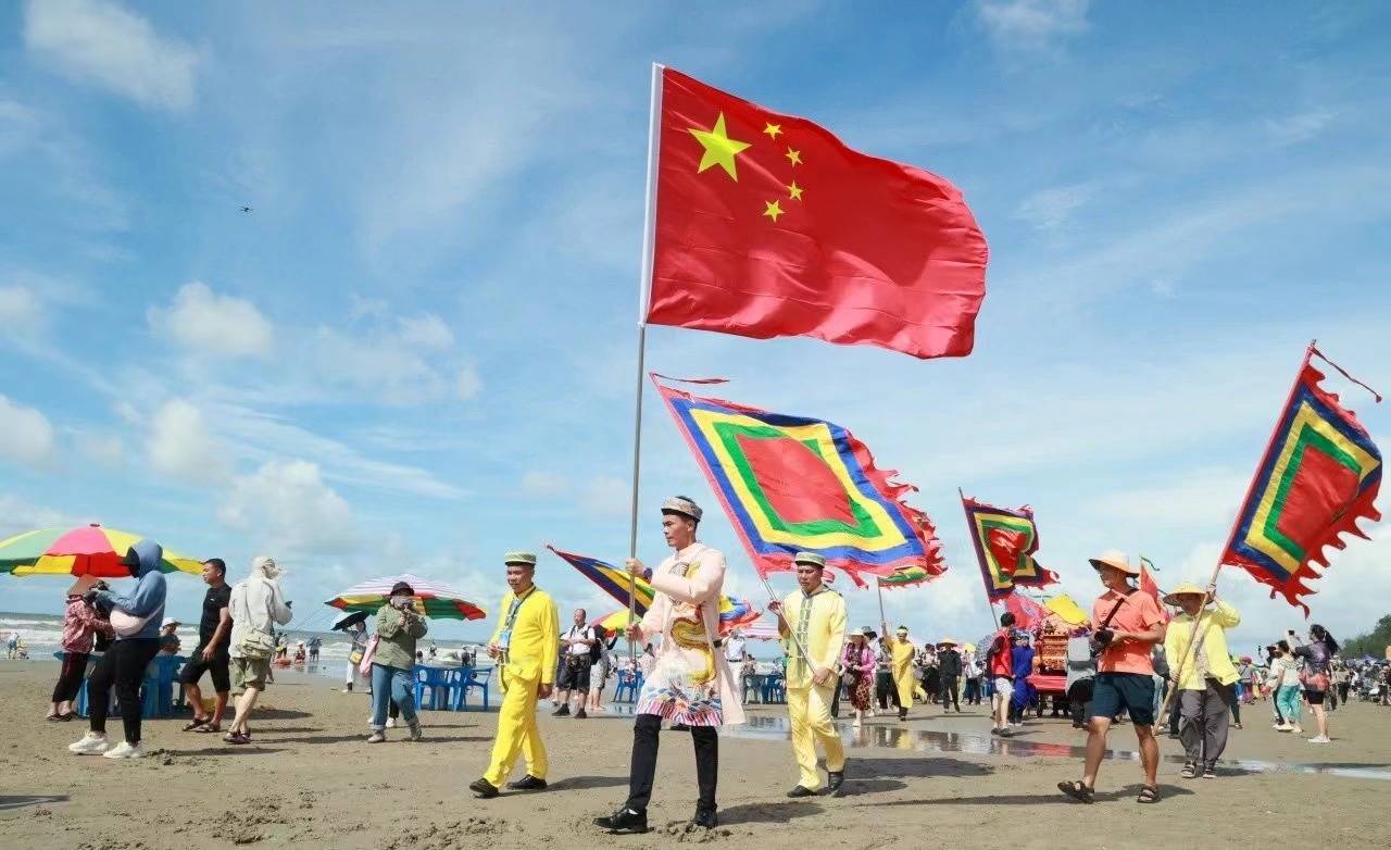 7月14日上午,广西防城港东兴市江平镇万尾金滩上,彩旗飘扬,锣鼓喧天,一年一度的京族哈节如期而至。这场由我国唯一的海洋民族——京族同胞举办的盛大庆典,吸引了来自四面八方的万名游客,共同见证了这一民族传统节日的隆重与热烈。