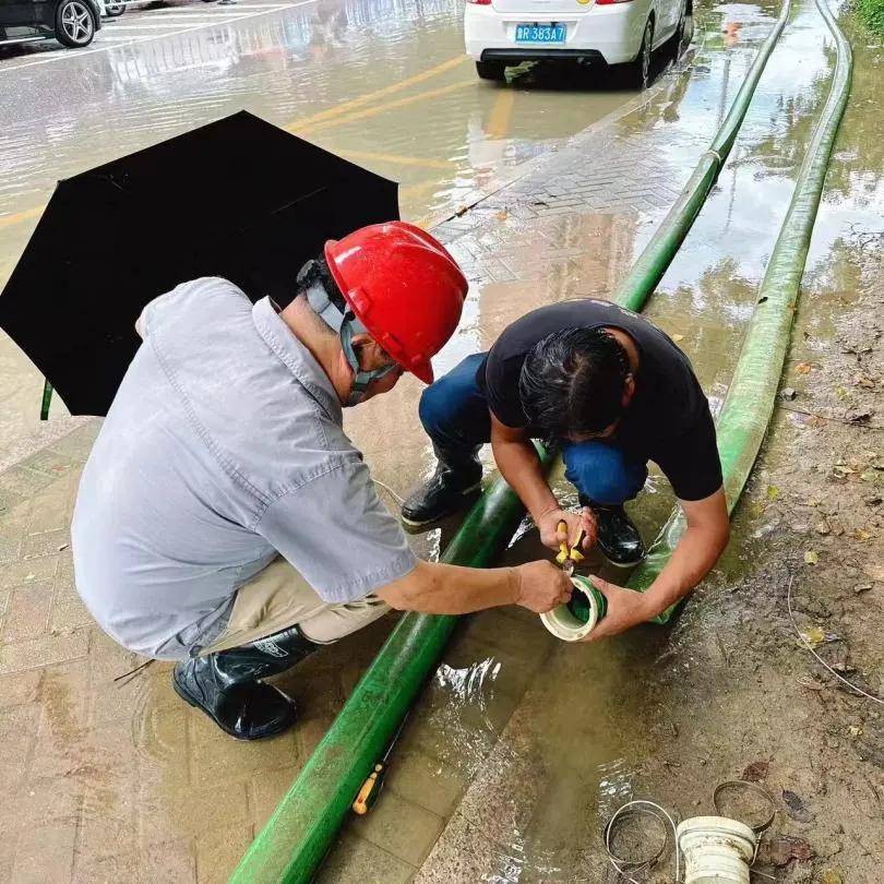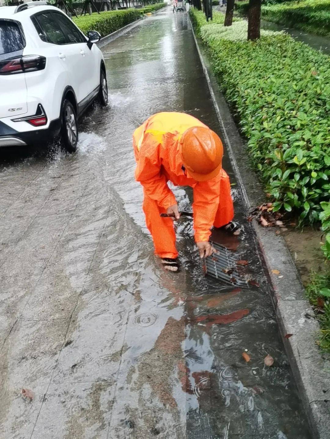 华广物业人员专注于他们能够控制和改善的方面,如确保排水系统畅通无阻,以及在必要时提供紧急支援。他们的专注和决心,即使在恶劣天气条件下,也确保了小区的正常运作和居民的安心。